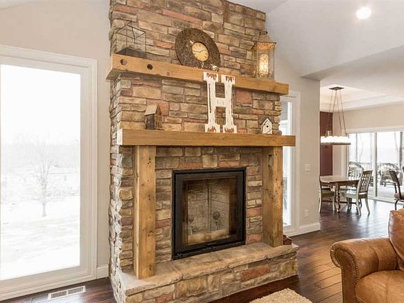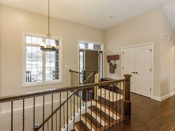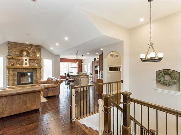 Luxury 5 BR 3.5 Bath w/over 3800 sqft on over an acre. 4 Car garage & precast garage below with driveway to it. Geothermal heating & heated flooring in the large shop area. Hand scraped Asian walnut hardwood floors through the main level. Master suite w/dual vanities, tile shower & large walk in closet. Covered porch off the master and dining. Chefs kitchen with stainless appliances, granite tops and cherry cabinets. 9' main level ceilings with 11' step up in living room with stone wood burning FP.