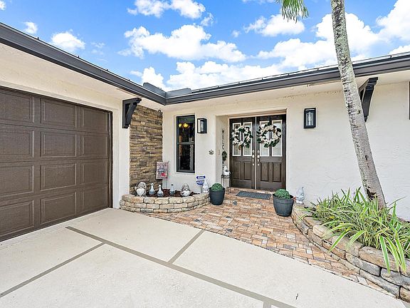 Welcome to the village of Wellington. Nestled in a non HOA neighborhood. This 4 bed, 3 bath, CBS, Pool home has a 2022 new Bronze, standing seam metal roof, 2021 all new Ceramic Glazed PGT impact windows and doors, whole house just reinsulated with spray icynene insulation 2022, 2024 new generator hook up with sub panel for specific rooms. A/C and HWH all replaced in 2018. A beautiful new Kitchen done in 2023 with white shaker cabinets, quartz counters, and stainless appliances. Enjoy the big lanai with a goldfish pond, screened in heated River rock finish pool and spa with color changing lights and fountains, over looking the wide canal. This home also features 2 primary suites, a flex room that can be used as a den, study, office, or an amazing laundry room with the updated plumbing. With wood, and vinyl floors, new fixtures, Cedar beams, security cameras, oversized driveway, privacy fencing, a 10x12 shed, Great schools, parks, shopping, and close proximity to all your Equestrian and Polo needs. This home has it all!