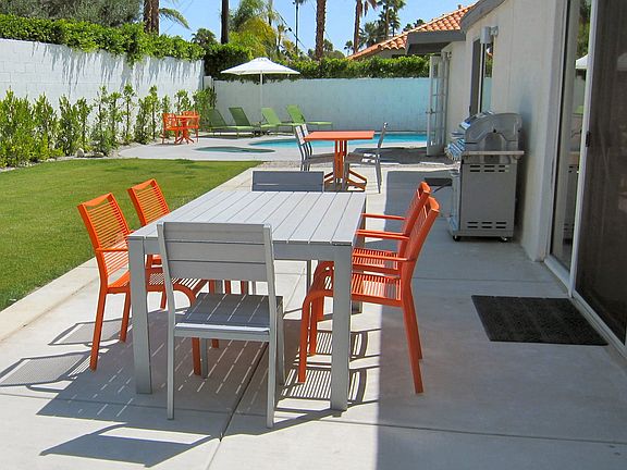 Live like a celebrity at "Palm Springs Midmod", our lovely 3 bedroom, 2 bath pool home with private pool house/cabana. Located in a very serene section of the prestigious Movie Colony East neighborhood of central Palm Springs, the home is a short walk or bike ride to the Uptown Design District of Palm Canyon Drive. Built in 1957 at the height of the "Mid Century Modern" movement, the house has been lovingly restored to its original glory with a full complement of modern conveniences, including a brand new, fully stocked kitchen with slick grey cabinetry, all stainless steel appliances, quartz counter-tops, and designer glass tile back splash. The space is incredibly light and bright with a wall of windows out to our entertainers back-yard for true indoor/outdoor living. The outdoor space features a large patio that runs the length of the house and provides ample space for dining and sunbathing while admiring the breathtaking views of the majestic San Jacinto mountains. Looking for a 6 month lease term, fully furnished. Small dog will be considered. Owner pays for landscaping, pool service and garbage. All other utilities (gas, electric, water, Internet/TV) are the tenant's responsibilities. Looking to lease fully furnished for 6 months. It is important to note that Palm Springs is a desert climate and the summers are brutally warm, with triple digit heat from June through September. People moving to the area from more temperate climates need to budget for high electricity bills for AC that will be running fairly nonstop. We have never rented our home on a full time basis and have no experience with the cost of running the AC full time in the summer. As an Airbnb, we would only rent out every weekend in the month of July and would rack up $500+ electric bills. The property is an original mid century modern home, built in the 50's. Both the architecture (open wood beam ceilings without insulation) and the build era do not offer the efficiencies of a more contemporary home. Retrofitting the home to be more efficient would destroy its classic architectural appeal so it remains as inefficient as it was back in the 50's. Because of the inefficiencies in the design of the house, the AC is only capable of maintaining a 30 degree temperature differential between the outside and the inside. On extremely hot days, it may not be possible to cool the house to the degree that's possible with more modern, efficient homes. If you need it be 70 degrees or below in the house at all times, this is probably not the house for you during the summer.