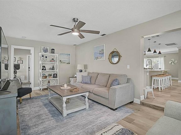 Tastefully modernized bathroomsGenerous island workspaceFully updated kitchenStorage shedGorgeous quartz countertopsImpact-rated garageVersatile flex room