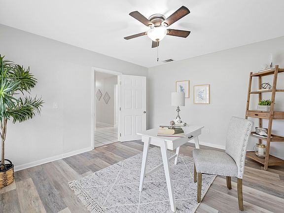 PRIVATE BACK YARD WITH NO HOUSES BEHIND YOU!! Move right into this roomy home located in the very center of Palm Bay located near the bowling alley, Target, Hammock's Landing shopping center & 195. 20 minutes from the beach & 45 minutes to Orlando Airport. Immaculate in every way this property has a formal living or office space, family room, dining room and large kitchen with plenty of pantry space/cabinet space. Enjoy the wood burning fireplace & all tiled & laminate flooring with no carpeting anywhere. Nice sized closets w/roomy bedrooms and bathrooms. Indoor laundry room, screened patio with very large backyard WITH NO HOUSES behind you. Newer laminate flooring, freshly painted and ready for your own personal touch. 2014 Roof and 2014 HVAC. Nice neighborhood with sidewalks and a great community feel.