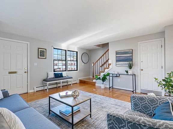 OPEN HOUSE 1/29/25 FROM 5:30-6:30PM FOR ALL IN PERSON SHOWINGS! This sunny and spacious 2-bedroom townhome offers a perfect blend of comfort and convenience in a quiet, well-maintained community. The bright living room, with gleaming hardwood floors and large windows, flows seamlessly into the dining area and updated kitchen, featuring crisp white cabinetry, black countertops, and a full suite of appliances, including a gas stove. Sliding glass doors lead to a private patio, ideal for outdoor relaxation or entertaining. Upstairs, the two generously sized bedrooms provide ample closet space and lots of natural light. Additional highlights include in-unit laundry, efficient heating, ample storage, and two dedicated parking spaces. Conveniently located near parks, schools, shops, dining, and major commuter routes, this townhome combines tranquility with accessibility. Schedule a viewing today and make this beautiful space your next home! Rent Fee Includes: Water, Sewerage Disposal, Snow Removal, Grounds Maintenance
