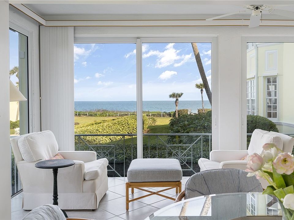 Ocean views capture your attention as soon as you open the front door. 2nd floor light & bright condo with elevator access, impact glass, neutral tile flooring. Spacious feel - being sold furnished! The Billows is a charming small community with 1-car garage, extra storage, heated community pool and private beach access. One pet up to 20-lb. allowed with board approval.