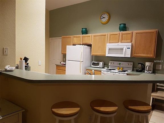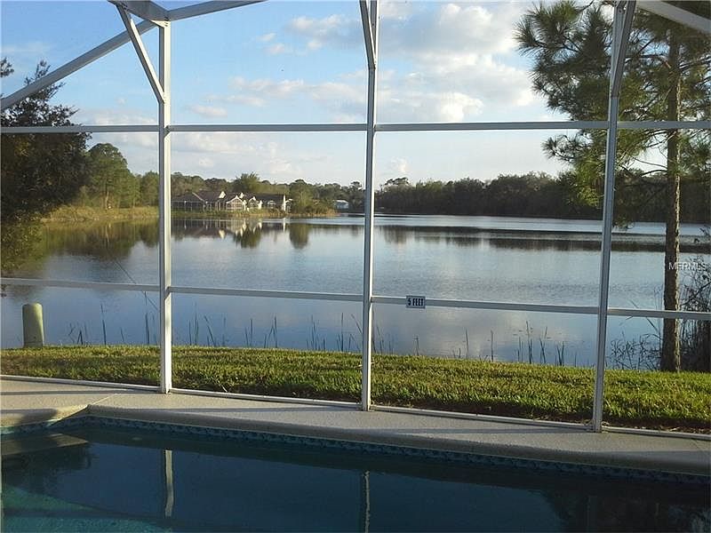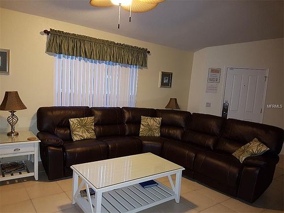 Don't miss this opportunity to own in this beautiful,peaceful location! The home is located on a small ( only 95 homes), secluded gated community , yet within 2 minutes drive from local stores, golf courses and restaurants and less than 5 minutes from I 4. It is the only home on on the cul- de-sac. It has been upgraded throughout, including new ceramic flooring in living and bedrooms areas and ceiling fans. The living area and both masters have sliding doors to the very private pool deck and give stunning views of the lake beyond. The pool is completely private. Open plan living / dining area with plantation style furniture and new leather couch. Two large masters with walk in closets.One master bathroom also steps onto pool deck. The twin rooms share the family bathroom and there is a shower over tub in this one. Plenty of storage space in the home. The garage has been used as a Superhero themed games room with pool table and air hockey The south facing pool benefits from a new solar heating system (2016) and a regular electric heater. The home is very secluded with no rear or front neighbors and only one side neighboring property which cannot be seen from pool deck. The property has a large side garden. Currently used as short term vacation home and there are some reservations to transfer should the buyer require them and the home comes fully furnished