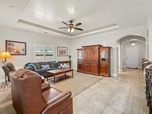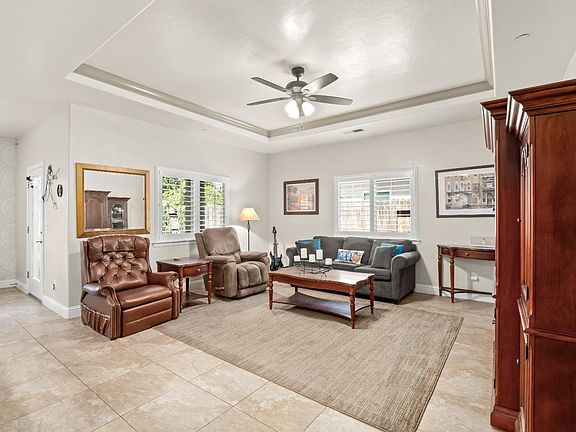 Welcome to 1180 S Berry Drive! This beautifully maintained single-story home offers 3 bedrooms, 2 bathrooms, and an open-concept floor plan designed for both comfort and functionality. The formal entry opens to a spacious living area featuring elevated ceilings, abundant natural light, and estate shutters. The kitchen is equipped with granite countertops, stainless steel appliances, a breakfast bar, ample cabinetry, and a large pantry conveniently located off the hallway. The thoughtful split-bedroom layout includes one bedroom and full bath at the front of the home, with the additional bedroom and private primary suite located toward the back. The primary suite boasts elevated ceilings, an oversized closet, and a spa-like bathroom with dual vanities, soaking tub, and a separate shower. Step outside to the backyard retreat complete with a covered patio, water fountain feature, lush lawn, and storage shed. Conveniently located near schools, parks, dining, shopping, and Highway 99, this home combines modern living with excellent accessibility. Contact your REALTOR® today to schedule a private showing!