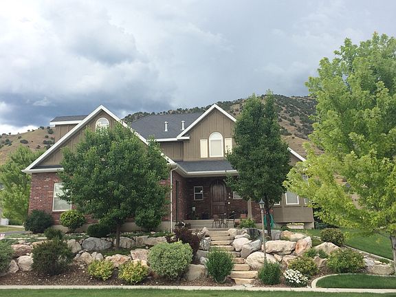 Former Parade of Homes home in 2008. Craftsman/ farm style brick and stucco. Located on the Providence bench with gorgeous views of Cache Valley. This beautiful 6 bedrooms, 3.5 bathrooms has an open concept with kitchen, dining and family room on main floor. Beautiful, high-end finishes throughout including wainscoting in bedrooms and living room/dining room beautiful, custom window wraps (molding) on windows. Beautiful wood framed fireplace with recessed space above fireplace wired for TV. Kitchen has granite counter tops and beautiful custom cabinets, with knotty , maple hardwood flooring, and French doors with internal adjustable blinds leading to the outdoor large patio. Maple hardwood flooring is also in the dining room/ office/ library, entryway, and den/nursery. Full main floor laundry with beautiful built in workspace and cabinets and large windowed door to access outdoors. Master suite includes: spacious bedroom and bathroom with jetted tub and separate shower, 3 closets (1 walk in & 2 additional), large den/nursery/craft room that has three large windows with beautiful views of the valley. Home includes 2 gas fireplaces (basement and main floor), alarm system with front and back porch security cameras, intercom on main floor and master suite. Basement includes family room/theater room with drop down screen and gas fireplace along with 2 bedrooms, full bath, play room and cold storage with custom built in shelves. Large 3 car garage includes built in wood, floor to ceiling shelving. Gorgeous, well maintained landscaping with mature trees, rock garden and beautiful views of Cache Valley. This is a must see home!