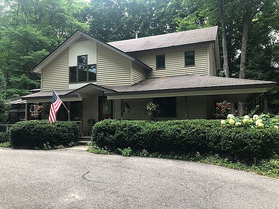 Location, Location, Location! Welcome to 1180 S. Peck Rd., located in the most desired South Shore Neighborhood, in Suttons Bay. Only a block away from the beautiful shoreline of Suttons Bay, where you can take a scenic walk to all the amenities this charming village has to offer. Public beaches, parks, restaurants, movie theater, TART trail and great shopping, to name just a few, are just a short mile from this great house! A huge wrap around porch greets you to this updated 2,035 sqft. custom home that is well appointed with 3 bedrooms and 3 bathrooms. Upon entry through the front door you will find this house is an entertainers dream! As you walk into the entry you will see a cathedral tongue and groove ceiling in the living room with real oak wood floors under foot. The living room leads into the open concept kitchen and dining room that share a vaulted ceiling. The unique dining room is a solarium which makes your dining experience feel alfresco, abounding with natural light and beauty. Updated kitchen with Stainless steel appliances, granite countertops, with pantry closet is a delight to work in. As you move out of the open concept of the main floor you will find yourself in the family entertainment room with a gorgeous gas stone fireplace and custom builtins to house all your electronics, books, games, etc. The family room French door leads out to a generous outdoor entertaining area including a covered dining and sitting area, large stone patio with fire pit, and an 8 person hot tub for all your outdoor living needs. The main floor also includes an updated 3 piece bathroom with custom tile shower that is both accessible to the living room and large mud room/laundry area. Off the mudroom you will enter the oversized two car heated garage that even includes an 8’ pit for all the car enthusiasts out there! Back inside on the second floor you will find 3 bedrooms, including the master en-suite. The master suite includes a recently updated bathroom with double sinks and custom tiled shower. A large walk-in closet with window allows natural light and fresh air to flow in. That’s not all! The master bedroom also includes access to your own private deck that is perfect for your morning cup of coffee and nightly stargazing. A newly remodeled third bathroom with tub/shower combo serves the two other bedrooms upstairs. A large linen closet rounds out the second story. In this house you will find great closet space and thoughtful storage for all your needs. This stunning house sits on 0.63 acre with mature landscape and creek running through it. Come take a look and see yourself in your new home! Asking $499,000. Showings by appointment only. Please call or text 231-215-1962. Buyers agents welcome.