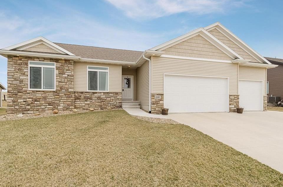 3 Bedroom 2 Bath Ranch home with almost 1600 SQFT and full unfinished lower level with 2 possible bedrooms and 1 more bath. Vaulted main level great room. Kitchen with granite tops and large breakfast bar. Popular floor plan with 9' ceilings and 10' trey ceiling in the master bedroom. Tile walk in shower and dual vanities in master. Ceramic flooring in baths and laundry room. Beautiful maple hardwood flooring. 3-car garage with additional shop space. Brand New Stone Fire Pit area in back yard.