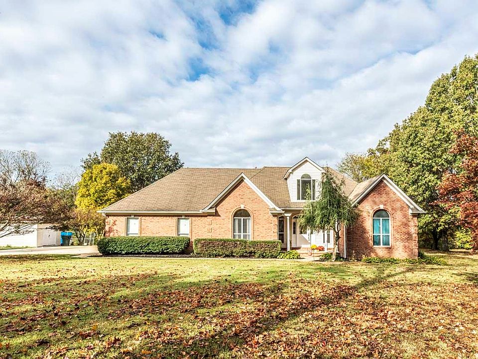 TIPTON COUNTY! 5 Acres! SHOP with electricity and 2 garage doors. Brick home featuring 3 bedrooms, 2 1/2 baths. Beautiful entry leads to extra spacious living room. Dining Room, eat-in kitchen and breakfast bar. Primary bedroom features luxury bath and bay window looking onto yard and trees. 2nd and 3rd bedroom have "Jack n Jill" bath. Newer appliances. Very convenient to Hwy 51, shopping, schools and churches.
