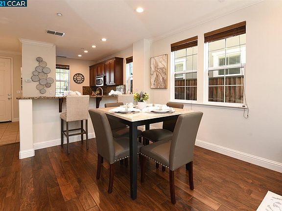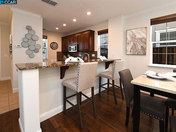 Impeccably maintained contemporary turn key home offers 3 bed /2.5 bath 1566 sq ft . with sophisticated upgrades throughout.You will find fresh interior paint & new carpets upstairs. Downstairs boasts wood floors along with a spacious open light filled floor plan and a gas fireplace. A chef's kitchen along with a large breakfast bar makes this kitchen the center of the home.The great room / family room opens to the back patio perfect for entertaining & everyday living. Master bedroom boasts a separate tub & separate shower & separate W.C. dual sinks & HUGE walk in closet.Custom window coverings along with dual A/C system & upstairs laundry room make this home one of a kind. 1180 Trailside Circle is walking distance to Concord Bart. It is a great commute location to shopping , trails , freeways , Walnut Creek , Pleasant Hill & downtown Concord. It also offers a finished 2 car attached garage .
