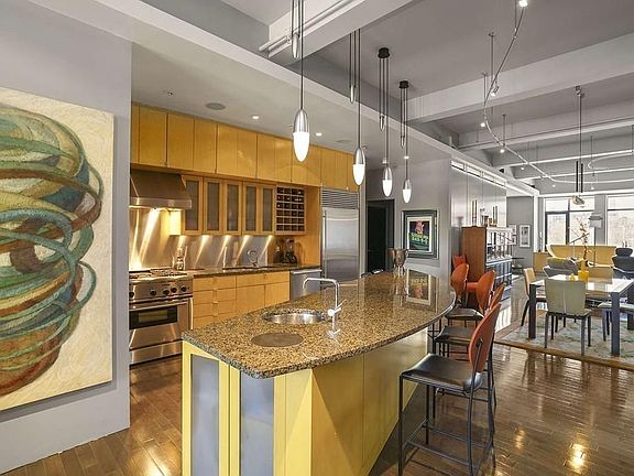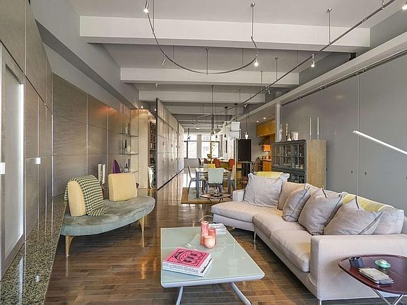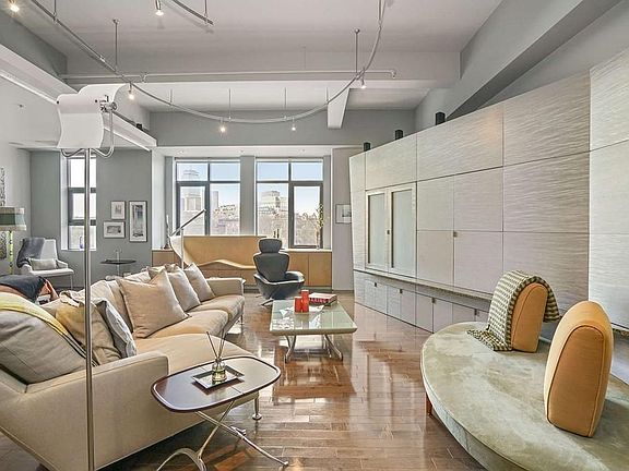 Take the elevator to this 3rd floor loft custom designed by Ruhl Studio. This is a one of a kind 1897 sqft SoWa Loft with views of Peter's Park & Back Bay skyline. The large open living space can be divided into a 2 bedrm/2 bath space easily by sliding the partition walls that can provide boundary's & privacy as needed. When opened the length of the space is highlighted by a combination of brushed aluminum walls that open to storage, translucent walls open to a home office, & a master bedrm closet. The angled walls along the perimeter add dimension, interest, flexibility, and improve the acoustics between rooms. En suite master bedrm features a built in king sized bed with a "fiddle leaf" maple headboard & night stands. The master bath features a double vanity & Jacuzzi tub. The flooring in the living areas is maple, green limestone tile & Carrara marble in the baths. The second bedroom, when not in use expands the living space. The is a private roof deck & 1 garage parking.