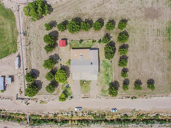 This land is approximately 5.38 Acres of land (farm ) w/water rights. Single level house with 2473 sq ft. House has refrigerated air, 3 living areas, formal dining room, game room with bar or can be used for large family room for gatherings, Huge patio also can be used as a car port (fits 3 cars easily). Property has 26 pecan trees, alfalfa fields. Also has barn\workshop and storage shed (recently built). Perfect , close enough to the city but also gives you that small town country living feeling.Equipped for RV hookup.
