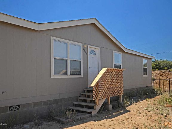 This very spacious manufactured home offers a huge well appointed kitchen and a bright open plan living/dining area, with 5 bedrooms in a split plan, and 3 fullbathrooms. One of them is a Jack and Jill bathroom. The mountain views are exquisite and the property is on 1.61 acres at the end of a cul-de-sac to protect your privacy. Private well with it own pump house, and 2500 gal storage tank. Outside shed for extra storage. Property is clean, move-in ready and eagerly awaits its new owners. There is a home warranty transferable to new owners. Sellers not in a position to make any repairs.Property priced accordingly. Rough dirt road requires high clearance vehicle.