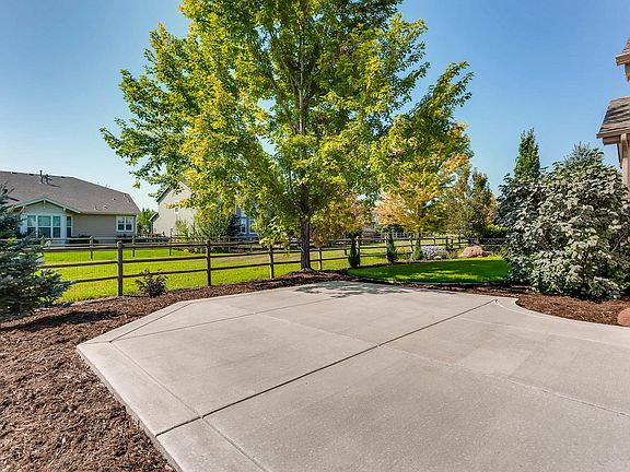 Updated and ready for move-in ranch style home in sought after The Elms at Meadow Vale! From the moment you walk up to the covered front porch and enter this bright and open floorplan you will notice the attention to detail this home offers. Inviting study off the tile foyer with glass french doors, impressive angles and architecture in the vaulted ceilings. Formal dinning room with chair rail. Three sided fireplace between the living room and family room that's open to the kitchen with hardwood floors and breakfast nook. Huge private master suite with 5 piece bathroom and walking closet plus two additional bedrooms. Full open basement ready for your design or lots of storage. The backyard has a covered patio that then extends uncovered into the back yard with professional landscaping that is fully irrigated with HOA included water keeping your yard green and lush at very little cost.