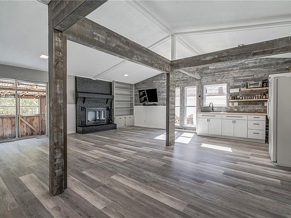 WELCOME HOME! Don't miss out on this Amazingly updated home located on a secluded 1.1 acres! This open floor plan home has Tons of character such as barn wood walls, bead board, built-in shelves & cabinets. Private park-like setting w/mature trees throughout property. New well pump & larger well tank. Waterproof luxury vinyl plank flooring w/Pergo Gold underlayment. Bathroom remodels w/marble top vanities & new oversized tile shower in M-bath. Grand living & kitchen great room w/vaulted ceilings. Enclosed patio w/windows for a view of backyard & woods. Upgraded recessed lighting throughout home w/adjustable color temperature. Wood burning "Heatilator" fireplace. Custom built-in cabinets & shelving throughout the home. New kitchen w/large stainlesss steel sink, butcher block countertop. Recently updated dual pane vinyl windows throughout. If you are looking for an updated, quiet home in the country but only minutes away from everything for under $200K this home is the one for you!