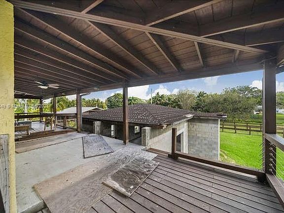 CASH ONLY. Lots of potential.This 5 bedroom 2 1/2 bath home sits on over an acre in a desirable Davie neighborhood, with fruit trees,pool,3 stall horse barn with rubber mats and a finished room with a/c and solar,private gates, on a cul de sac street with country charm but close to all amenities.The main house has a new 1/2 bath,kitchen and family room with view of pool, 2 fireplaces,2 newer a/c units with "I wave" on one,all impact glass windows and doors,solar water heater,L shaped porch with view of yard and access to the pool. Per seller,the unfinished structure has passed all city inspections,one column on porch may not be structural sound buyers responsibility to verify. Open permits may or may not exist, Buyer to close with Gregory B Taylor Title and sign "hold harmless" addendum.
