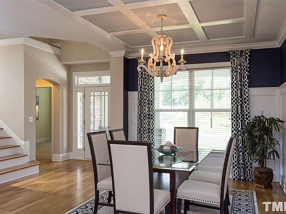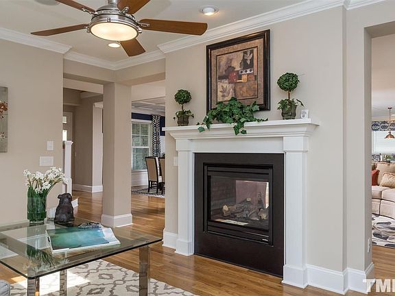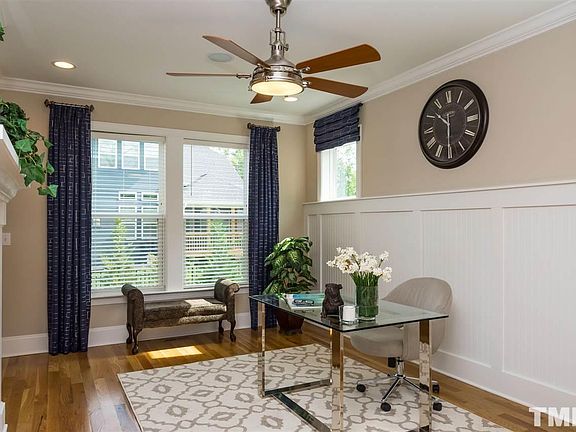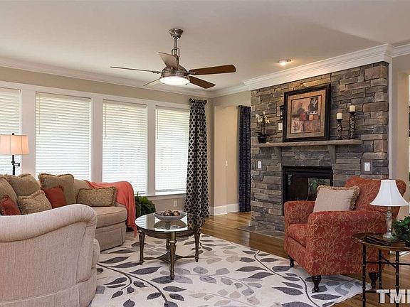 Former Model in highly-sought-after N Raleigh locale. All the Luxuries! Hardwoods 1st/2nd Flr. Guest Suite down. Open Floor Plan. Extensive trimwork. Gourmet Kitchen w/large island, SS appl, tile backsplash, desk, sunny Brkfst Nook. Family Rm w/stone fireplace. Cozy Den enjoys fireplace too. 2nd Flr retreat w/hardwoods. Oversized Master w/absolutely stunning spa-like Bath. Granite vanity/walk-in shower/huge custom closet. Spacious Rear Deck, Fenced Yd. Don't miss this ENERGY EFFICIENT David Weekley home!