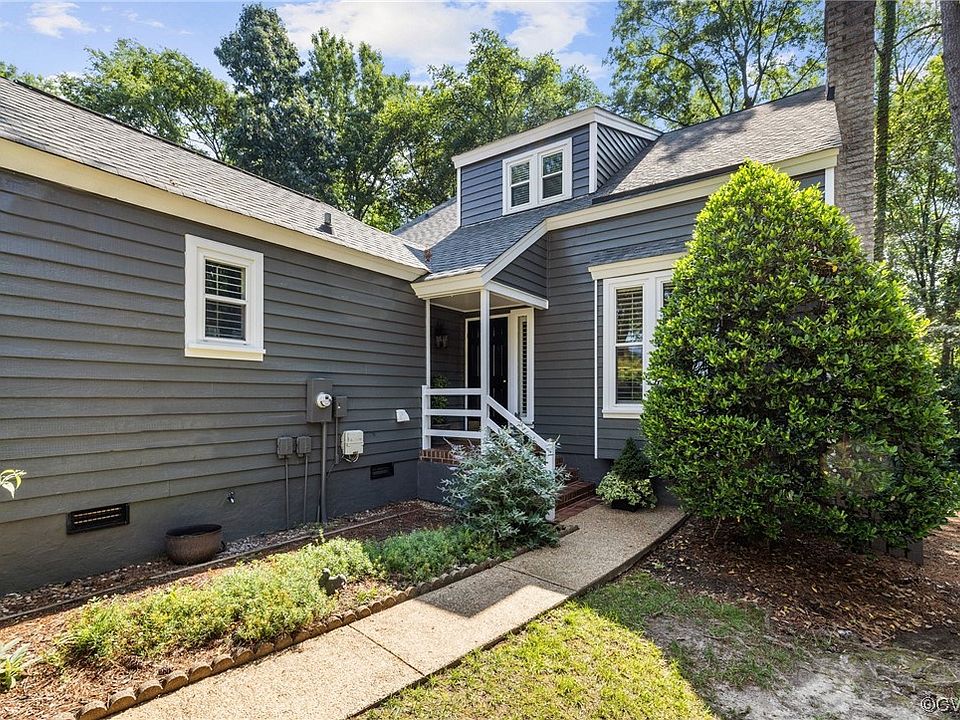 Beautiful 3 bedroom, 2.5 bathroom townhome in the well-maintained neighborhood of Sussex Square. This home offers a welcoming foyer, a spacious living room with fireplace, formal dining room. The kitchen is bright and updated with a vaulted ceiling, eat-in area, granite counters, tile backsplash, stainless appliances, wine cooler. Charming brick patio off the kitchen. Relax and enjoy private wooded views from the inviting sunroom and Trex deck. First-floor primary bedroom with en-suite bathroom. Two generous bedrooms upstairs along with a large hall bathroom. Walk-in attic and eave storage on the second level. Wood floors throughout most of the home. Downstairs HVAC was replaced in 2021 and upstairs replaced in February 2023. Replacement windows. Home is nicely located in the neighborhood within walking distance to the community pool. Very convenient location near many shopping and restaurant destinations such as Short Pump Towne Center.