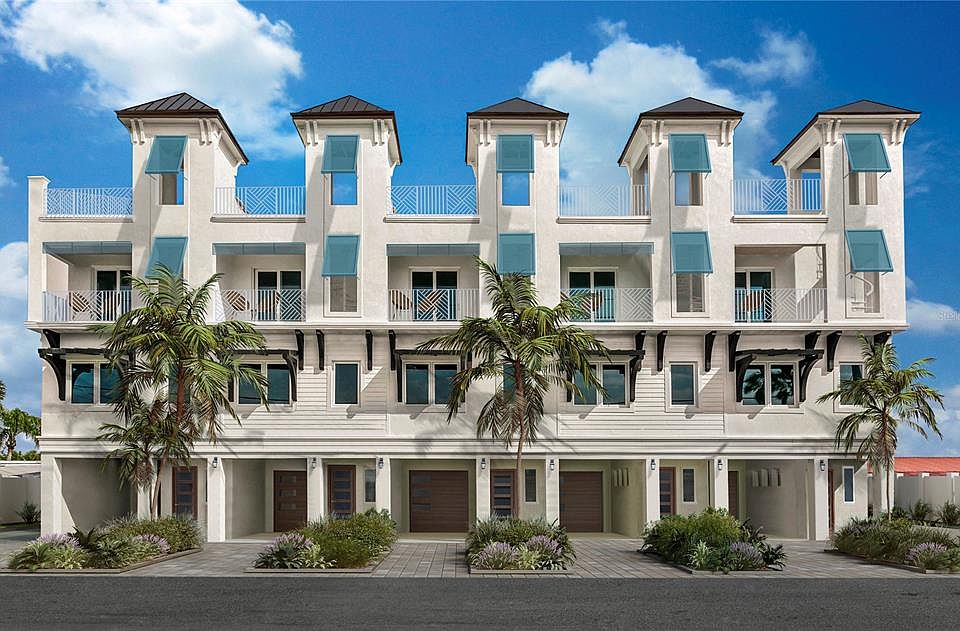 One or more photo(s) has been virtually staged. Prime location and expertly designed, each three-bedroom, three-bath home perfectly balances daily convenience and luxury elegance. With premium amenities, timeless architecture and designer-grade finishes, your home is carefully crafted to satisfy your every desire. Each home comes with a deep, open water private boat slip on the resident dock with easy access to the Gulf of Mexico. Your luxury waterfront lifestyle in the highly sought-after beach community of Treasure Island features architecture inspired by the British West Indies. Each townhome features three levels of breathtaking views, accessible from your very own elevator and best enjoyed from your expansive balconies or your private rooftop terrace. The chef’s dream kitchen and stunning living space is designed with entertaining in mind. Your home’s finishes have been selected from a curated collection of designer-grade options, giving you luxury coastal style throughout your personal oasis. Interior features include an open floor plan with generous living spaces, oversized two-car garage, spacious walk-in closets, private elevator, kitchen with high-end appliances, cooktop, built-in oven and microwave, and wine fridge. Exterior features include expansive private balcony spaces, second-floor balcony with west-facing, sunset and partial gulf views, second- and third-floor balconies with east-facing pool and channel views, deep-water boat slip with easy access to the Gulf of Mexico, private rooftop terrace with optional spa, and resort-style pool and deck with private cabana space. The exterior features clean lines with tropical touches, creating a luxurious, resort-style appearance with timeless appeal. Additionally, each unit offers expansive private outdoor spaces that carry into spacious, airy interiors that maximize views without compromising privacy. As a Coastal Collection homeowner, you’ll live a relaxed, waterfront lifestyle with easy access to boating, steps to the soft sandy gulf beaches, renowned restaurants, arts and culture, and more, in a home that feels like a luxury getaway. You’ll find a private escape from the outside world in luxurious, inviting spaces designed with a waterfront lifestyle in mind. For brochure and floor plans, give me a call or visit the website and contact us today! Anticipated completion is May-June 2023.