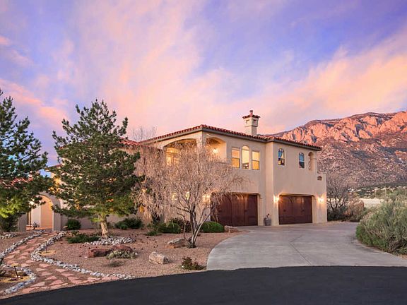 Gated community & in North Albuquerque Acres! Enjoy the tranquil sound of the water running over rocks in the pond outside or play a game of pool or foosball, if not, enjoy a steam in the master bath or just take a few minutes to enjoy the view from your upstairs balcony. The office downstairs is complete with murphy bed for overnight guests...This multigenerational home can accommodate everyone...with a 4 car garage. It is up to date with 2 usb charging ports-1 upstairs, 1 down as well as Nest energy efficient thermostat. 4 possible 5 bedrooms as well as a game room. Welcome home!
