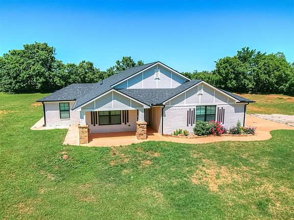 Welcome to your custom built home on your own 2 acres of peace in Deer Creek school district! Home offers 4 bedrooms, 2 bathrooms, office, two large covered patios, covered front porch, large storage shed, storm shelter, 2 full acres, and so much more! The master suite is large for all your furniture, you will love the huge walk in closet with plenty of built in storage space, master bath features a beautiful walk in shower, double vanities. Floor to ceiling custom built rock fireplace host the elegant living space with 10' ceilings, 6' windows for all your natural sunlight, you will enjoy the 8' island in the kitchen area. This home was built with all solid maple wood cabinets and shelving! Water softener, roof and rain gutters installed 2024, we also had the exterior painted 2024, New carpet 2025 and interior paint. Unrestricted area and Logan county! Schedule your showing today! Back on the market..Buyers financing fell apart! Make it yours today