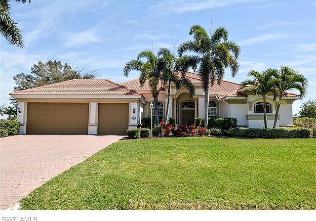 Nestled within the gated 27 hole golf community of Cape Royal, this spacious, bright, meticulously maintained,custom built home has 4 bedrooms, study, 3 bath, 3 car garage, and pool. The home enjoys views of the golf course & a lake. The split floor plan provides a master suite with two walk in custom closets opening to a master bathroom with jacuzzi tub, walk in shower, & dual sinks. The large under truss lanai will be great for outdoor entertainment and leads to an enclosed pool area. The home sits on an oversized professionally landscaped lot with a beautiful lake view with no golfers close to your property. It also has an automated zone sprinkler system. Lady Anne Circle is a very private street and the place to live in Cape Royal. Cape Royal is a gated, financially strong community, Pine Island public water & it's location in Lee County(not Cape Coral) means lower taxes and water fees. Enjoy the virtual tour.