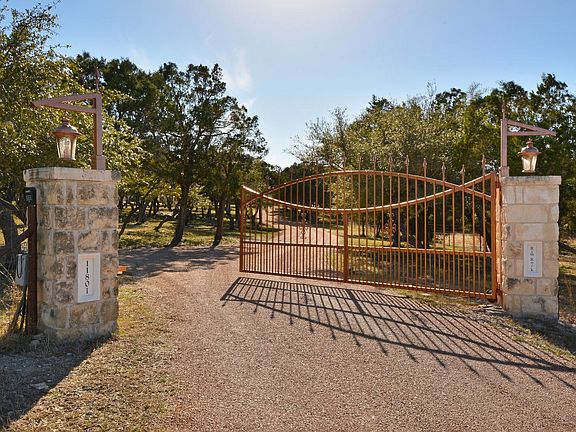 Incredible 14-acre private, unrestricted & gated gentleman's ranch located between Austin & Dripping Springs. This luxurious gated sanctuary includes an updated and very open home with 5 bedrooms and 5 bathrooms and an office, plus an enormous upstairs living area with a full bath attached; an additional house with 2 bedrooms and 2 bathrooms; an insulated and finished-out metal building to use for studio or workshop; a stable; a two story tree house, zip line & more. MANY IMPROVEMENTS HAVE BEEN MADE! There is even a pond dug and ready to be filled. The very private main house features timeless finishes including hardwood flooring, tall ceilings, crown molding & abundant natural light that illuminates the home. Separate guest house at back of the property boasts back deck & above ground pool. Breathtaking views from both houses. Stables & chicken coop allow you to be close to your furry friends.