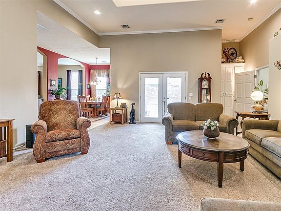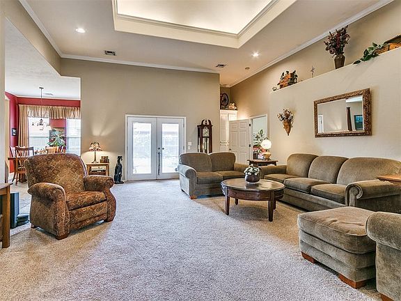 You are greeted with a beautiful foyer and architecturally designed ceilings. The home features 3 beds, 3.5 baths, a study, and 3 car garage. Two bedrooms with walk-in/roll-in showers and accessible sinks. Primary room has a shower and walk-in tub. The third bedroom has large windows and a sitting area. Study with floor-to-ceiling bookshelves and extra wide desk space. Open and flexible floor plan with two living areas and two dining areas. Large kitchen, plenty of room to entertain, Walk-in pantry, double ovens, and also has a large island with a lowered end for wheelchair functionality and/or serving options. The home is designed for handicap accessibility. All exterior entrances are extra wide with low thresholds and ramps to the garage. Above ground saferoom in the garage. Enjoy the backyard on the covered patio, flower garden, and tiered raised garden. In sought after Piedmont School District while offering the convenience of the city amenities. Seller is having an estate sale June 13, 14, and 15.