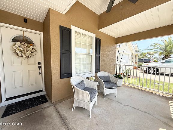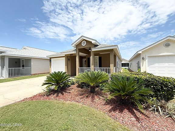 Discover the perfect blend of location and layout in this 3-bedroom, 2-bath home located in the highly desirable Palm Cove community of Panama City Beach. Just minutes from the beach and short-term rental friendly, this home offers incredible investment potential or a fantastic personal retreat. Positioned on a quiet, dead-end street (from dusk until dawn) with extra parking and backing up to the neighborhood pools, it's ideally situated for both privacy and convenience. The well-designed floor plan features a large kitchen with pantry, indoor laundry, and a bright living area that opens to a screened-in back patio—ideal for relaxing or entertaining. The oversized primary suite includes a double vanity and spacious bath. Additional highlights include tile flooring throughout, a single-car garage, A/C approx years old and water heater approx years old. Palm Cove offers two community pools, a playground, and low-maintenance living with HOA fees covering lawn care, nightly security, and annual pressure washing of the homes.