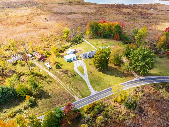 Just minutes from local grocery stores and restaurants, you'll find this lovely, updated, 3 bedroom/4th possible, 1.5 bath home. Set well off the roadway, you'll be welcomed home with a circular drive. There is new flooring throughout and new paint both inside and out. The kitchen was redesigned to a more functional layout with a custom island, new stainless steel appliances, butcher block countertops and enormous walk-in pantry. You'll love cozy winter nights by the wood burning fireplace in the living room with peeks at Floria Lake, just across the street. The primary bedroom has been updated with an added half bath, massive walk-in closet, over-sized patio door, patio and mini-split heating & cooling, making it the ultimate retreat. The freshly painted 24x70 pole barn has a concrete floor and wood stove ready to be connected.