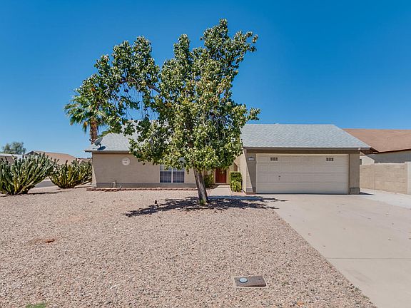 Pebble Tech Salt-Water Play Pool with waterfall! Huge corner lot w/ side-yard gate. NO HOA! New carpet! AC unit replaced 2015! Split 3 Br/2 Ba layout w/ beautiful stacked-sandstone fireplace for a lovely focal point to the expansive Family Rm. Formal dining access to eat-in kitchen w/ stainless steal appliances, white cabinets, tile flooring, crushed granite sink, and granite tile countertops. Kitchen also features a neat pass-thru opening to living room. HUGE vaulted addition off the original master bedroom gives lots of flexibility to this floorpan. Updated master bath has upgraded cabinets, walk in shower, glass block, and marble tile. Enclosed AZ Room with access from Master and LR gives great add'l living space. Water Softener! Entertain on beautiful flagstone patio, by pool & grass!