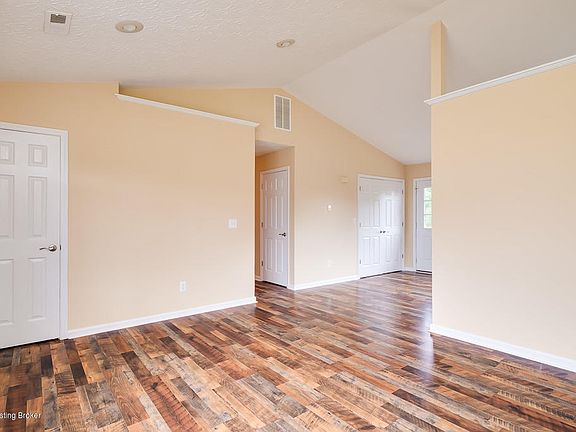 **BRAND NEW STAINLESS STEEL APPLIANCES HAVE BEEN INSTALLED IN THE KITCHEN SINCE THE TIME OF PHOTOS!** This immaculate three bedroom ranch is quietly located at the back of the subdivision in Heritage Creek. You'll love the charming shutters and spending warm summer evenings on the spacious front porch. Fresh landscaping and a beautiful lot provide this home with great curb appeal. Enjoy privacy and views of mature trees from your fully fenced rear yard. Move-in ready is an understatement as the seller has laid all new hardwood flooring, new carpet, fresh paint, new light fixtures, installed new kitchen countertops, and upgraded to stainless steel appliances throughout! The abundance of natural light that floods this home is only enhanced by the soaring vaulted ceilings and (CONTINUED) >> recessed lighting offered in the main living space. Desirable open sight-lines provide ease of conversation between the living room and eat-in kitchen. Just inside the front door is a coat closet for storing shoes and jackets. Laundry hook-ups can be found in the closet just off the eat-in kitchen which keeps the majority of your housework conveniently central to one area of the home! A hallway off of the living room leads you to each of the three bedrooms and two full bathrooms. They offer neutral carpeting, paint colors, and cabinetry and countertops that would suit the taste of anyone easily. This move-in ready home won't last long. Find it located near Quail Run Golf Course, a short drive to nearby groceries, and offering quick access to Cooper Chapel Road, Preston Highway, and the Gene Snyder Expressway!