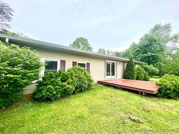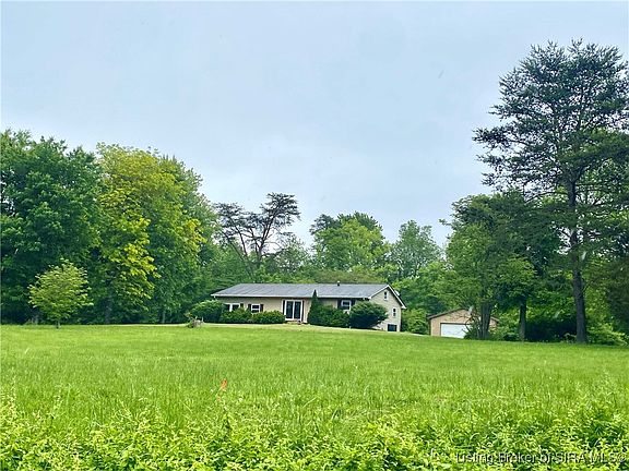 Welcome to the country! 5 acres with room for additional homes or barns. Large sprawling ranch with front and rear decks, mature trees, large 24x24 garage with concrete floors and electric and a second large newer shed beside the garage. 3 bedrooms on the main level with large kitchen and living room for larger furniture. All kitchen appliances remain including washer and dryer. Additional living quarters on the North side of the home with recently painted concrete floors. Large basement with double water heater and furnace with laundry area and possible dog grooming area. First floor bathroom with jetted tub. This home also qualifies for NO MONEY down through the USDA loan program. 5 minutes to six lanes of highway conveniently located 15 minutes North of Louisivlle metropolitan and 1 hour South of Indianapolis. Growing area but still tucked in the country.