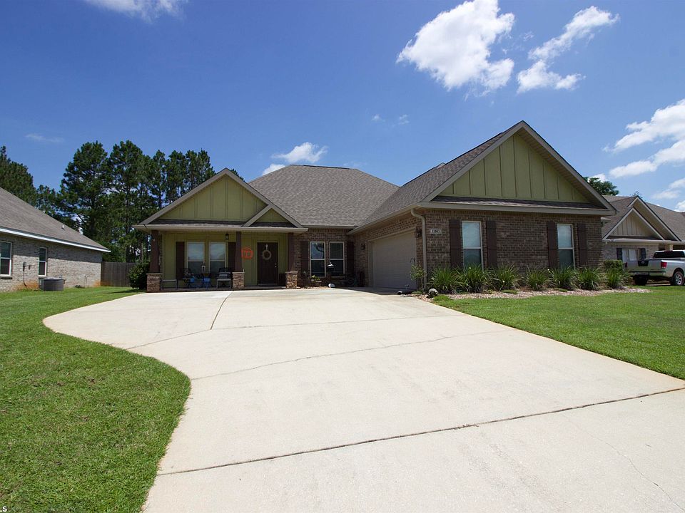 Welcome home to this fabulous craftsman in Canaan Place! Beautiful home located off the beaten path yet close to everything! The home features 4 bedrooms and 3 full baths. The split bedroom plan offers everyone in the family or visiting, maximum privacy. Large kitchen has tons of cabinet space, a spacious eat in area, island and gas range! Laundry room is also large. Vaulted ceilings can be found in the separate dining room and spacious living room. No carpet in this home! New luxury flooring in a living spaces are just another perk. Wonderful covered back porch overlooks beautiful flat fenced in backyard. Another covered front porch welcomes you to the home. Garage is very spacious with decked attic space over it and two built in shelving areas. Great for storage! Canaan Place neighborhood has a two convenient entrances, a community pool and pond. So if your family loves swimming and fishing then you'll love those amenities! Right around the corner from the sought after Belforest Elementary School and less than an hour from the beach, make this the perfect location!