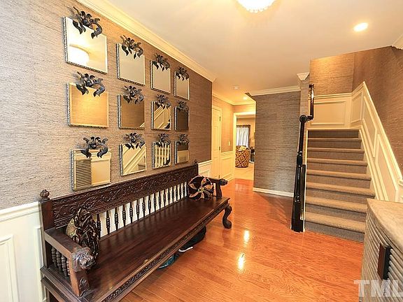 Rare end unit townhome w/ garage. Enter foyer w/ grasscloth paper & immediately you know the home is loaded with designer features, high end lighting. Check out the crystal knobs. Main flr bonus/family rm plus adjacent office & full bath, 2nd flr main living has open plan with hardwoods, large kitchen w/ island & gas range, living open to dining, breakfast rm & sunroom. Huge master bedroom w/ vaulted ceiling, 2 walk-in closets, master bath w/ walk-in shower & corner garden tub. Great space & lives large.