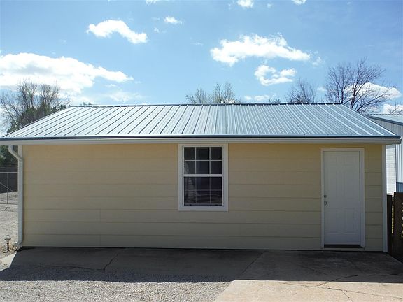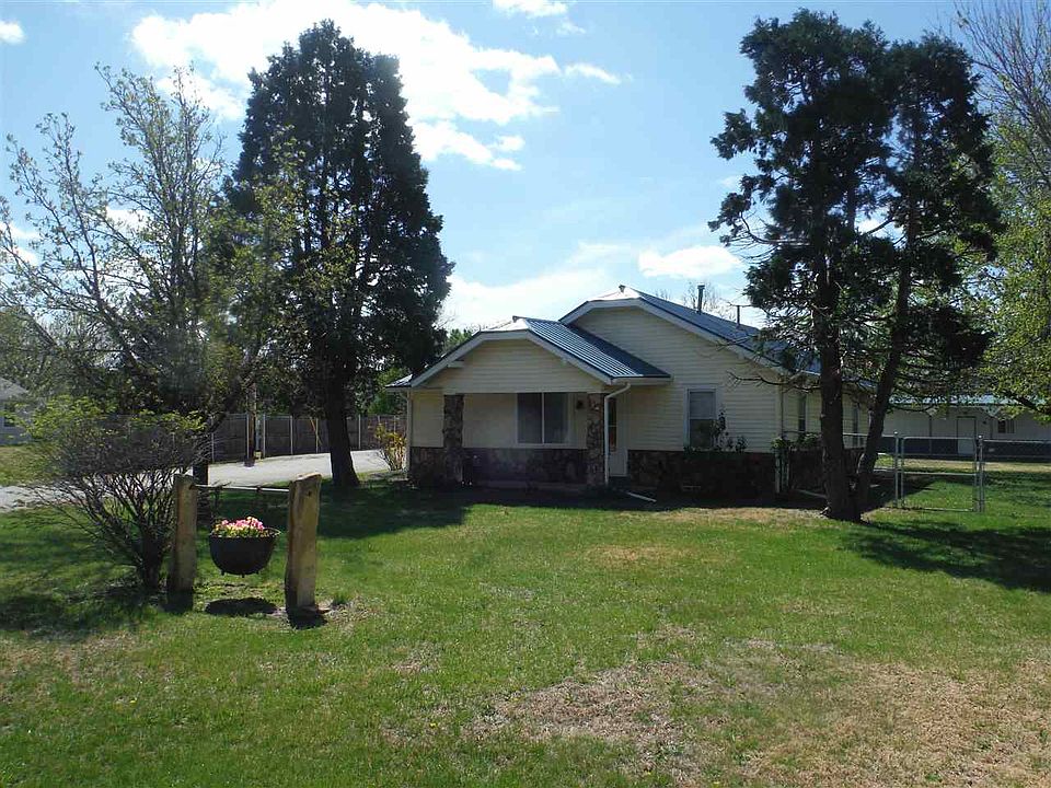 Outdoor hobbyists look no further! Amazing outdoor spaces and tons of workshop and storage room come with this almost 1 acre property. There is plenty of space for your favorite hobby in the 40’ x 40’ metal building only 2 years old. 14’ tall walls, insulated, electricity w/220V. Overhead doors are 10’ wide & 12’ tall. 24’ x 40’ concrete approach (driveway). The building also has a 10’ covered area on the north side (big enough to park a car under). There is also a double car detached garage with opener, large RV carport big enough for an RV and a boat (24’ x 35’ 12’ tall) 3 years old. The property is completely fenced with 5’ chainlink and 6’ privacy fence. Fences all belong with this property and are set 6” inside the property line and there is a cased well for watering. When you're ready to relax, the front and back porches of this home are both covered. The inside of the home will not disappoint either! The house has ceiling fans throughout and soothing neutral colors. The kitchen has been beautifully updated with Hand built oak cabinets in the kitchen with pullout trays in the pantry. The appliances remain with the home. The bathroom has gorgeous custom tile work on the floor and walls and a jacuzzzi tub. The house features new steel roof (3 years old), New furnace and A/C 80% efficient, new water heater and an updated electrical panel. Tons of space and move in ready! Don't miss this one