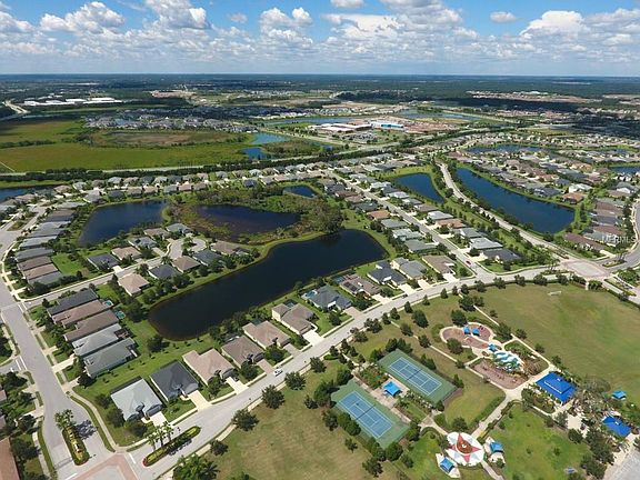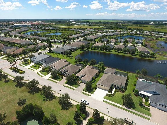 PRIME LOCATION within Lakewood Ranch's CENTRAL PARK, this former Neal Model (Endless Summer 2) is impeccable, maintenance-free and offers 3 bedrooms/baths and a den/office with French doors and hardwood flooring. The home's spacious open concept blends a formal dining area, great room and kitchen with ceramic tile, quartz countertops, stainless appliances, an island, walk-in pantry and breakfast nook. Central to the great room are pocketing sliders that open to a stunning lanai with heated pool overlooking large lake and bird sanctuary. The master suite retreats to the back of the home and offers spectacular lake and lanai views with lanai sliders, coffered ceiling, dual walk-in closets, and extra large bath with separate vanities. As a model, the home offers exquisite details throughout including wainscoting, lighting and finish upgrades, large mirrors, coffered ceilings, extra large 2 car garage and direct access to this fabulous Community's 10 acres of dog parks, trails, ball fields, tennis courts, splash park, covered pavilion and pool/spa & fitness center. Central Park is nestled between two top-rated schools (BD Gullet Elementary and Lakewood Ranch High) and the soon to be completed East Manatee Middle School. Easy access to dining, golf, i-75, beaches, UTC mall, etc.