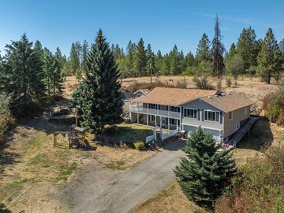 Discover breathtaking mountain views with this daylight rancher set on 17.85 acres. This home includes 4 bedrooms, 3 bathrooms, 3 ponds, a barn, tool sheds, and a dry cabin. Enjoy a variety of fruit trees, lush natural vegetation, and a welcoming in-ground pool. Inside, the primary bedroom, kitchen, living, and dining areas all offer stunning vistas, with an even more impressive view from the front deck. The spacious kitchen features a center island and bar, while the 2-car garage and generous bonus room provide ample space. The property also includes fenced pastures at the front, ideal for livestock, and is conveniently located near beautiful hiking and biking trails. New on demand pump, 20 gallon pressurized tank, gives you amazing water pressure! This serene natural setting is just a short drive from Spokane and Suncrest.