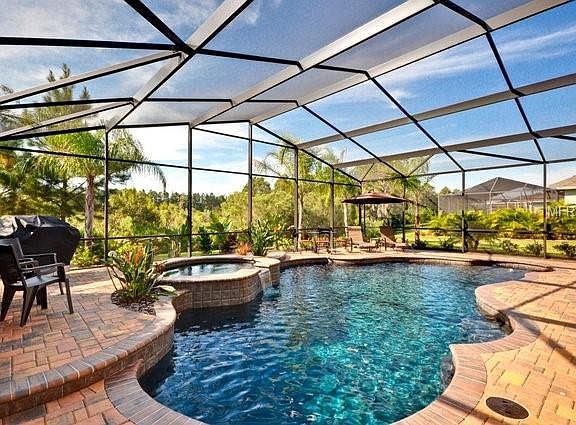 Amazing Upgraded Executive POOL Home on .3 Acre Beautiful Conservation Lot! 4 Bedrooms + Office + Bonus Room + 3.5 Baths + 4 CAR GARAGE w/Professionally Designed Built-ins that will Impress you! Grand Paver Driveway to your 4 CAR GARAGE & Pillar Accent Entry greets you w/Upgraded landscaping throughout the property! Formal Dining Room & Office w/ Hardwood Floors! Kitchen has Soaring Ceilings, Center Island, 42" Cabinetry, Built-in Wall Oven, Cook Top can be electric or gas, Walk-in Pantry & Breakfast Bar Overlooking Great Room that opens to an Entertaining Dream Lagoon style Salt Pool & Spa w/Heater & Brick Pavers that has a Private Tranquil Conservation view! Master Bedroom has a gas Fireplace for your enjoyment, Master Bath En Suite has Dual Sink Counter & lots of Cabinetry, Cherished Oversized Master Closet. ALL 4 Bedrooms on 1st Floor! 2 Bedrooms with Full Guest Bath nestled together. 4th Bedroom w/Full Bath En Suite & Access to Pool. Dedicated Laundry Room will spoil you! Bonus Room is the only room upstairs & it is huge! 1/2 Bath in Bonus room to accommodate you! Updated Professional Photos coming this week - Paint Colors were improved! Panther Trace has two community pools and Zoned to A Rated Schools!