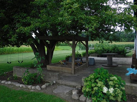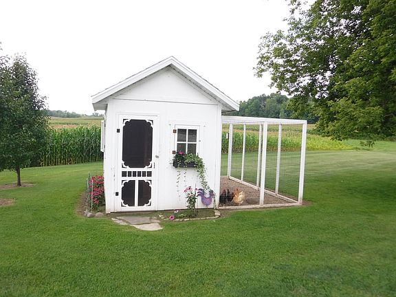 Fall in love with this AMAZING farmhouse full of charming character with some modern touches! The beautiful landscaping will take your breath away! Patio area with lots of colorful flowers, covered wrap around porch with great views and fun play area with sandbox for the kids. Enter the home to be welcomed by the bright spacious newer addition with wood burning stove and locker area for keeping the family organized. Huge kitchen with breakfast bar and panty. Formal living room. Main floor laundry. Upper level - 3 spacious bedrooms and full bath. 3rd floor offers 2 bonus rooms - great for playroom, office space or 4th bedroom. 2+ car attached garage. Well maintained barn - perfect for your hobby farm and additional adorable chicken coop. Property being surveyed to include approx 2 acres
