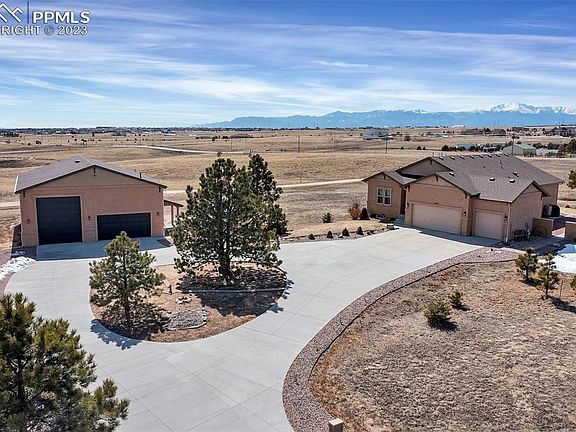 This beautiful home is located in the well desired Antlers Ridge Estates sits on 2.5 acres at the end of a cul-de-sac. As you enter your new home you will see the spacious living spaces on the main floor along with the like new hardwood floors. The kitchen is perfect for entertaining all while being able to talk to your family and friends. The breathtaking Pikes Peak views won't go unnoticed whether you're in the living room, kitchen or primary suite. Walk out on your patio, let the dogs run, or go relax after a long day in your hot tub and soak in the Colorado air. The basement offers additional living space with a large family room, 2 additional bedrooms, and a bathroom. Don't forget the enormous shop 40x50 that has plenty of room for your toys, fits a 46 ft camper/boat, has a bathroom, and loft you can set up as another sitting area or perfect to just hang out. This home is a little peace of heaven close to town.