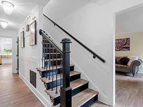 Stunning modern home on 1 acre wooded lot in Raleigh! Expert craftsmanship everywhere you turn. Private dining room features chair rail, crown molding and bay window with backyard views. Luxury vinyl plank flooring throughout open concept main level with tons of natural light & nature views. Kitchen has been fully remodeled and features quartz countertops, hexagon mosaic tile backsplash and gas range. Main level also offers generously sized, separate office space which can also serve as a main level owner's suite. Second level owner's ensuite features large walk-in closet and added bathroom with high end design- crown molding, granite countertops, beautiful light fixture & walk-in shower with seamless doors, rain shower head & tile surround. But that's not all- more UPGRADES: remodeled 2nd bathroom & gorgeous screened in porch!! Relax on a large back deck with private garden views. HOA covers clubhouse use, basketball and tennis courts & newly renovated million-dollar pool!!! WELCOME HOME!