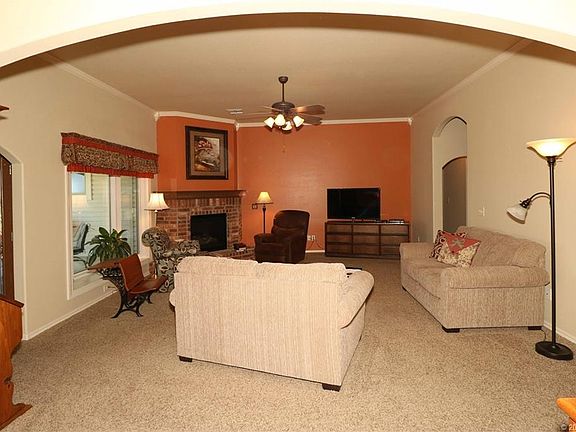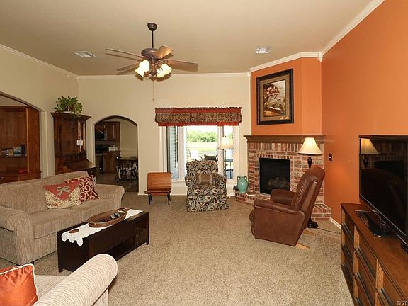 Move In Ready! Awesome 4/2/3. Backs up to pond, beautiful view. Post & rail fence w/black chain link. Upgrades; bay window in living rm, roll-out window over kitchen sink, leaded glass front & back doors, brick wall around extended patio, floored attic.