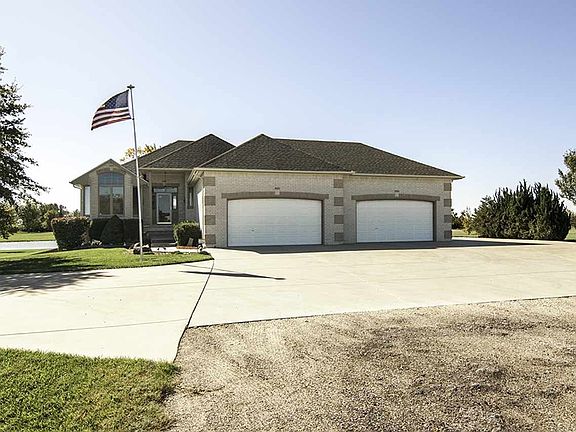 Custom one owner home on 4.73 acres. Stately circle driveway, full brick exterior, pella windows with the built-in blinds, pella doors leading to the covered deck and lower level walk-out. Zoned HVAC system installed in the home for comfort and efficiency. The 4 car garage measures approximately 24 feet deep and 44 feet wide, it is equipped with a 220 amp outlet for an air compressor or welder, a true hobby area that is comfortable and convenient for a homeowner. The kitchen is very spacious and roomy. Ample counter space, center working island, pantry, solid surface counters, fully applianced, intricate tiled back splash, under counter lighting, breakfast nook, and solid wood flooring. The living room displays bamboo flooring with an accent outlying decor. The covered deck is wood with aluminum spindles for longevity and the views of the property are showcased from this point, beautiful sunsets and the pond! There is main floor laundry in a separate room with great cabinets for storage and a utility sink. A master bedroom with superior space and an attached master bath! There are several ADA doorways throughout the home, the homeowner was thinking ahead. The lower level boasts 9ft ceilings, a walk-out door, family sized custom wet bar for entertaining, full surround sound system and movie/television screen that lowers from the ceiling, (the projector, screen, speakers, and all equipment remain with the home) There is a fourth bedroom, separate office, storm shelter room, and full bath in the lower level. The grounds have an approximately one acre stocked pond, a 17 zoned sprinkler system on irrigation well, which waters the entire piece of land. Landscaped beautifully with trees all around the property.