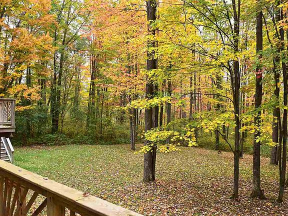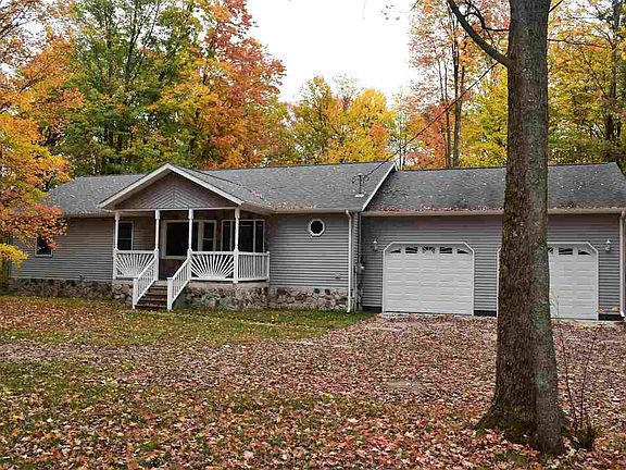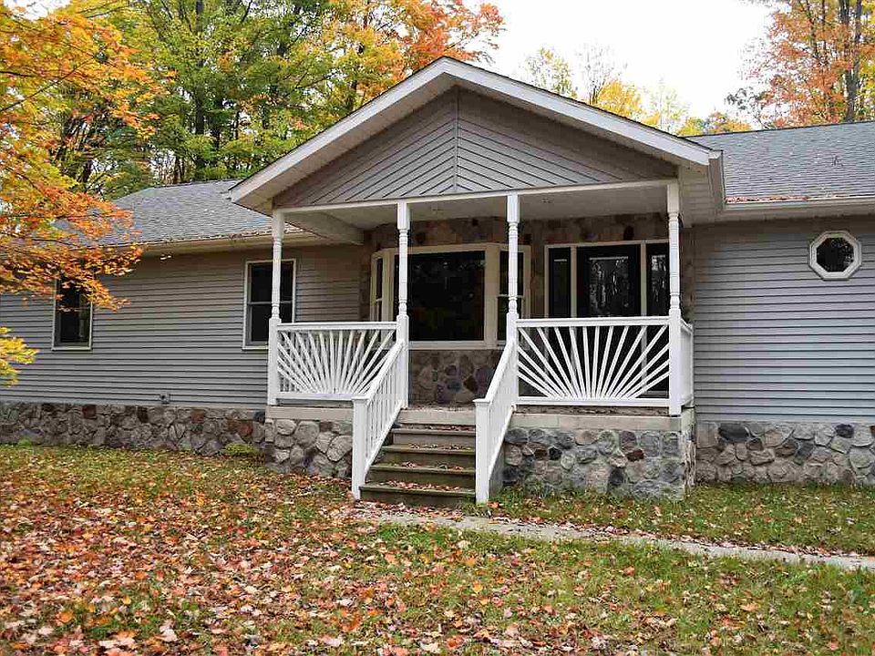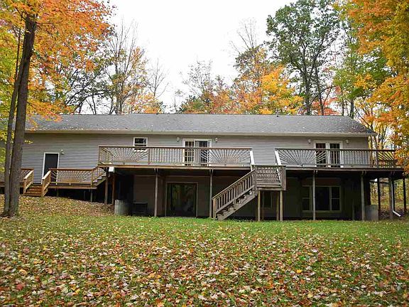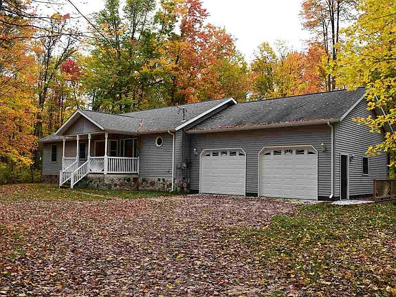From the moment you pull down the wooded driveway, you will feel the peace and quiet that this home has to offer. Tucked in the woods and situated on 10.02 acres. Wonderful quality built family home featuring 5 bedrooms and 3-1/2 bathrooms. This home features a large open floor plan with an island kitchen, vaulted tongue and groove ceiling in the dining and living room plus real hardwood flooring. Door wall off the dining room to massive backyard deck 61x11.7. Large master en suite with stand up shower, whirlpool tub, walk in closet and door wall leading out to the large deck. 2 additional main floor bedrooms and a full bath featuring jetted tub. Main floor laundry room with 1/2 bath near the entrance to the garage. Head on downstairs to find a full finished walk out basement featuring an additional 2 bedrooms, another full bathroom, 2 office's or play room areas for the kids, 2 large sitting areas, kitchenette, think of the possibilities with all this extra space. Storage area downstairs as well. Now head outside to the lovely 10 wooded acres complete with groomed walking paths with mixed hardwoods. Oversized attached and heated garage. Did I mention the outside wood boiler to heat the house in the colder months and save you some money on your heat bill. Sellers will be installing new carpet in the 2 upstairs bedrooms, if you hurry you might be able to pick the colors! Plenty of space for your family and friends to enjoy and a great place for entertaining too!