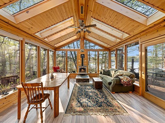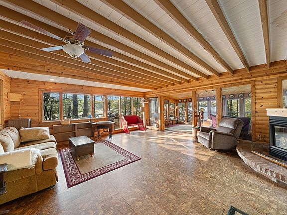 Welcome to your private lake paradise only 1.5 hours from the Twin Cities on fully recreational Pine Lake! This year-round cabin sits on the southwest corner of the lake with complete privacy on just over an acre with 105 feet of beautiful water frontage. The upper level was entirely redone in 2018 with roof, windows, LVP flooring, and custom features including a bathroom with natural amethysts embedded in a concrete sink, a vintage stained glass window that glows from the bathroom skylight, and a belt driven ceiling fan. Huge entertaining and living spaces throughout the main level with 2 gas fireplaces, a 3-season porch and amazing views of the lake throughout. You will also enjoy the outside patio or boardwalk style deck which walks you to the lake where you have picturesque views. Great level space as well to play yard games and enjoy creating beautiful memories for years to come!