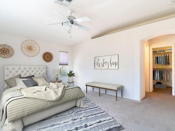 Beautiful, clean, and move-in ready! 4 bedroom 2 bath single story in Coldwater Ridge. This amazing Avondale single story home has all the right touches. New light fixtures. HVAC replaced in 2021. New beautiful turf and landscaping recently updated. Terrific floorplan. Open kitchen/living area overlooks the lush and low-maintenance backyard. Great sized primary ensuite, with double sinks, and separate tub & shower. Three additional guest bedrooms, or one could easily be used as a den or playroom, with double door entrance. The home has been meticulously maintained, and loved. Located on a culdesac, with views to a community greenspace, this home is well-located with easy access to both the I-10 and the 101.