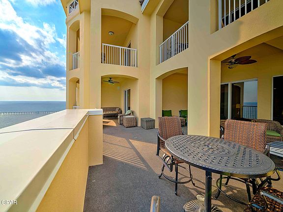 Rare Gulf-Front four-bedroom, three bath, fully furnished PENTHOUSE unit located at Grand Panama Beach Resort offering breath taking views of the Gulf of Mexico. This must-see property comes with an oversized balcony with ample room for two outdoor living areas and dining area offering breathtaking Gulf views, PLUS a private second balcony off one of the guest suites facing east to watch the sunrise over the emerald, green waters! Upon stepping inside, you are greeted by the beautiful tile floors leading into the main living area. The well-appointed kitchen with pantry features stainless appliances, a large breakfast, and a gorgeous backsplash perfect for entertaining guests. The kitchen is open to the living room, dining room and wet bar with wine fridge, that all have panoramic views and lead out to the private balcony perfect for both relaxation and entertaining with friends and family. The spacious master suite has access to the gulf front balcony, ensuite with dual vanities, a separate soaking tub, and a walk-in shower. There is a second master with ensuite, a single vanity, separate tub and walk-in shower located at the front of the unit, and two nice-sized bedrooms on the East side of the penthouse, one with a large East Facing private balcony for guests to enjoy. Even the parking is exclusive with two dedicated parking spaces in the private penthouse garage located under Tower 1! This non-rental unit has been meticulously maintained, and the dual HVAC units were updated in 2021. Grand Panama Beach Resort, one of the most desired resorts in Panama City Beach offers 24-hour security services, 2 resort style pools, with one being heated, beach side tiki bar, large fitness center, onsite general store, onsite bistro restaurant, owner's library, barbeque grills, and level 5 walk over from tower 2 to Tower 1. Don't Miss This Opportunity to Own a Piece of Paradise. Contact Us to Schedule a Viewing Today! Buyers should verify all important information.