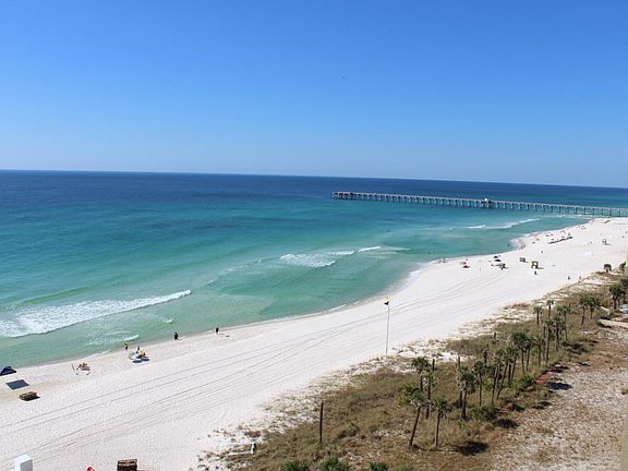 Grand Panama Beach Resort is one the most desired Condo Resorts on the Beach.This 2bed 2 bath with bunks unit is fully upgraded, all wood tile, stainless appliances, granite counter tops through out.2 pools, fitness room, tiki bar, Plenty of parking.