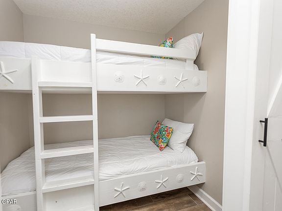 Beautifully renovated in soft watercolors, new living room furniture, new built in bunks with barn doors, custom plantation shutters throughout, new kitchen backsplash, new stove, Master bath shower & tub remodeled new porcelain plank flooring. new HVAC and hot water heater. Porch furniture is all new on one of the largest balconies in the complex.Storage room on forth floor. Strong rentals